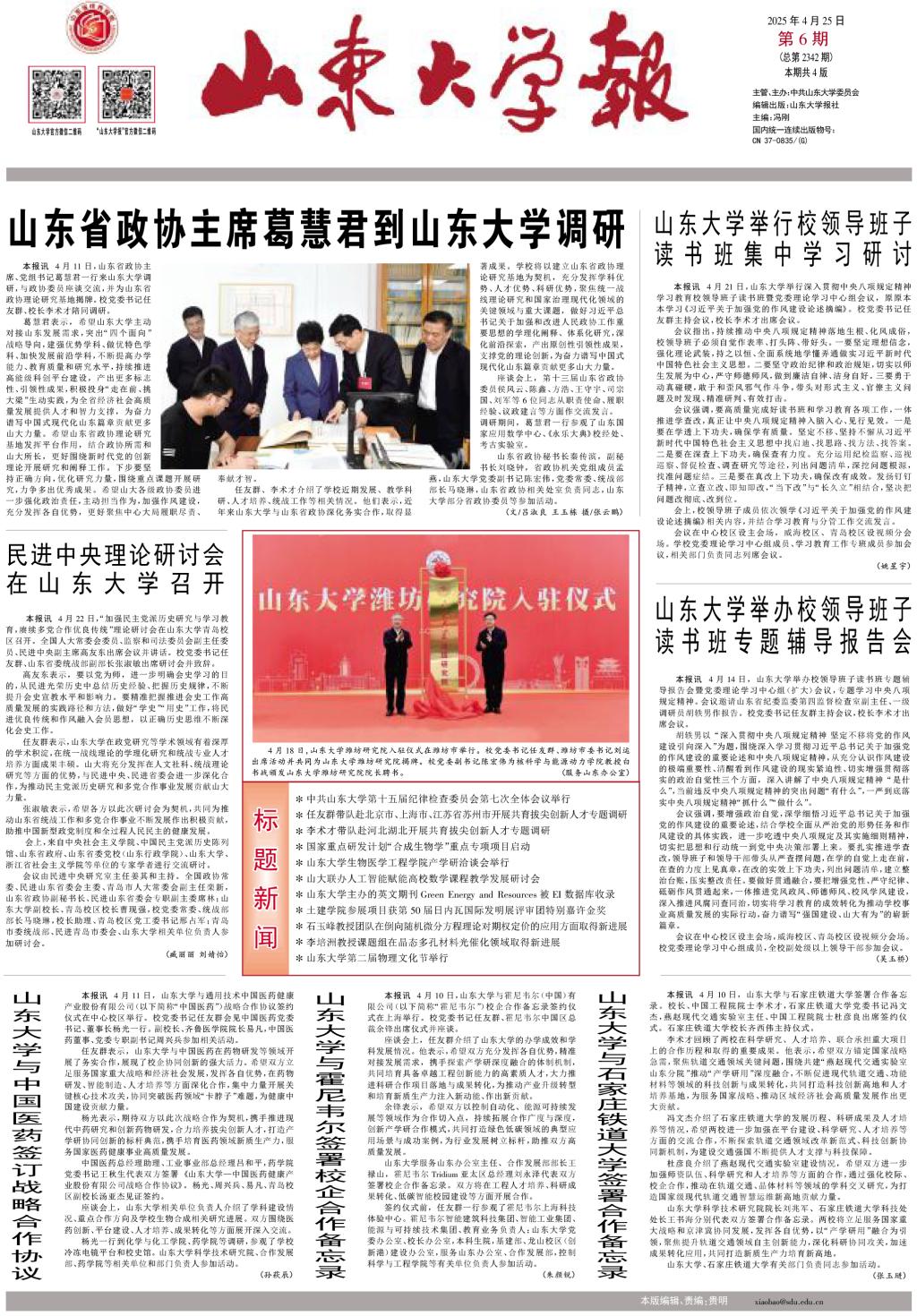全國政協副主席楊震到山東大學調研